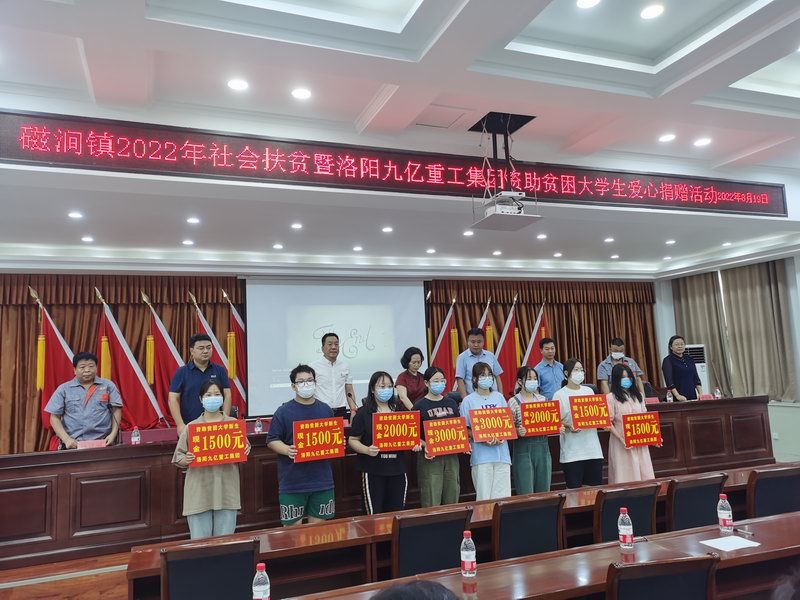 愛是與生俱來的,在血液里流動,在骨子里結(jié)晶,它源源不斷的由心而生,永不枯竭,只要人人都愿意奉獻(xiàn)一點(diǎn)愛,就如甘霖沐浴大地,人間處處盛開幸福之花! 為響應(yīng)洛陽市政府精準(zhǔn)扶貧政策,洛陽九億重工集團(tuán)有限公司及董事長王九茂積極參與捐資助學(xué)的慈善義舉活動,特做出如下決定:1、公司幫扶磁澗鎮(zhèn)2017年新招貧困大學(xué)生21名順利入學(xué),每人資助2000元,總計(jì)肆萬貳仟元整; 2、總經(jīng)理王九茂(縣政協(xié)委員)以個(gè)人名義資助磁澗鎮(zhèn)南窯村2017年新招大學(xué)生6名,總計(jì)12000元整; 我相信,在社會各界的大力支持和共同努力下,我們的“愛心助學(xué)”活動將會惠及到更多的同學(xué),為了夢想,刻苦讀書、報(bào)銷祖國,廣大同學(xué)也一定會在溫暖的社會大家庭里茁壯成長,必將成為國家建設(shè)的有用之才! 洛陽九億重工集團(tuán)有限公司 董事長:王九茂
